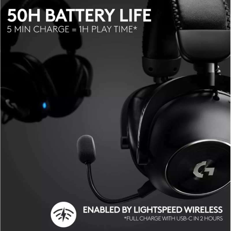 The PRO X Wireless LIGHTSPEED Gaming Headset. Engineered for the extreme performance you expect from PRO X—now with 2.4 GHz LIGHTSPEED wireless. Advanced Blue VO!CE, next-gen 7.1 surround sound, and PRO-G 50 mm drivers for clear sound imaging and professional sound and voice comms. PRO X Wireless delivers crystal-clear game sound and voice chat. Comfortable memory foam, plus durable steel and aluminum construction let you play to win.