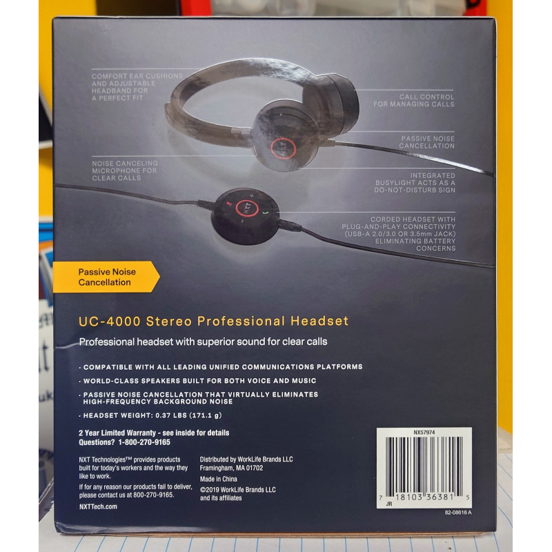 NXT Technologies UC-4000 Noise-Canceling Stereo Binaural Over-the-Head Headset (24405311)