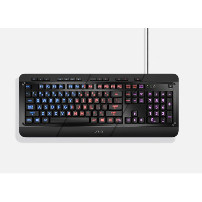 Azio Large Print Tri-Color Illuminated USB Keyboard